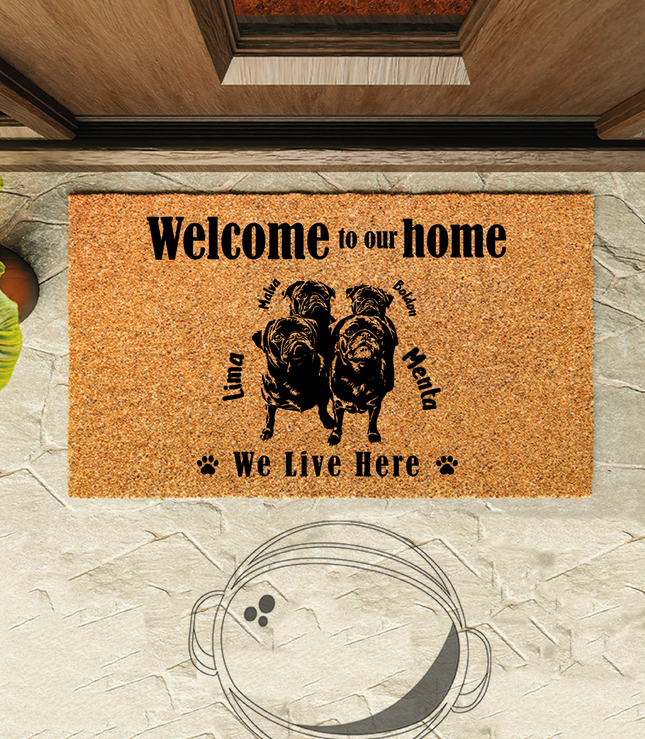 Decora tu entrada con el diseño de los reyes de la casa, mezcla perfecta de amor, diseño exclusivo y motivación diaria. COMPRA Y ADJUNTA mínimo 2 fotografías y preparamos la mejor version para tu choapino especial » Mi perrit@».